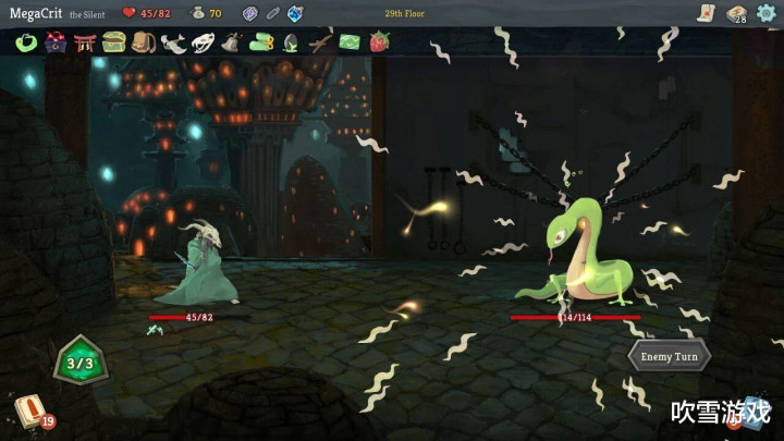 战斗系统的精髓在于敌人意图完全可见。玩家可以清晰地看到敌人在下一回合的行动(攻击、上debuff、强化自身等),从而提前规划本回合的出牌策略。这极大地降低了纯粹由运气带来的挫败感,将胜负的关键牢牢锁定在玩家的计算、规划和风险评估能力上。每一场战斗都像在解开一个动态的数学谜题。