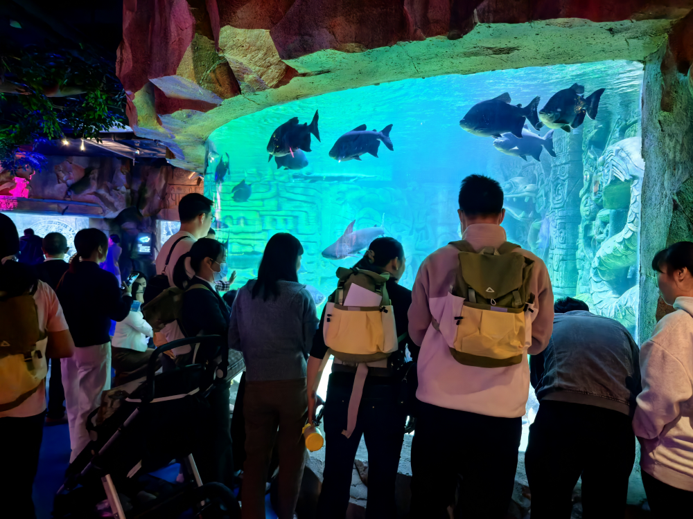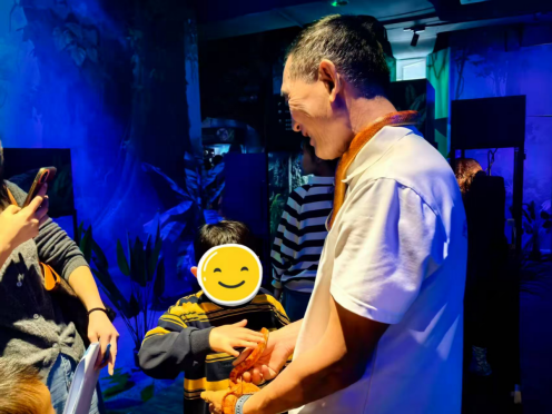 海洋世界场馆内,五彩斑斓的鱼群在展缸中游弋,趣味十足的海洋生物表演引得参加者们阵阵喝彩,充满创意的创想小镇更是让孩子们流连忘返,驻足探索。家长紧随孩子的步伐,时而陪孩子观察海洋生物,时而参与互动游戏,现场洋溢着欢声笑语。社工适时引导孩子们分享观察心得,大胆表达所见所感,主动分享海洋知识,不同家庭间的隔阂在温馨互动中逐渐消融。其间,大家互相拍照合影,将一个个温暖瞬间定格为永恒记忆。