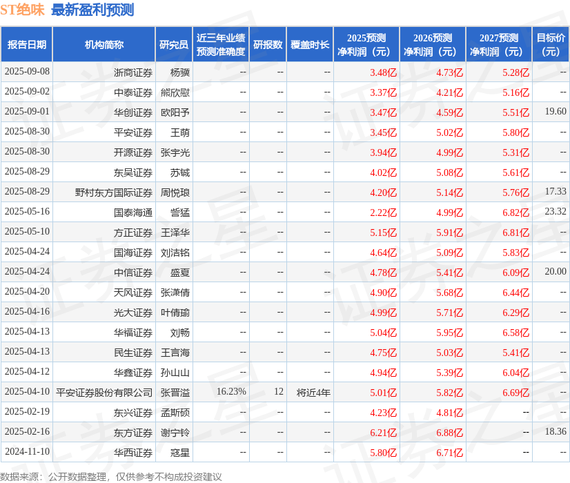 以下是详细的盈利预测信息: